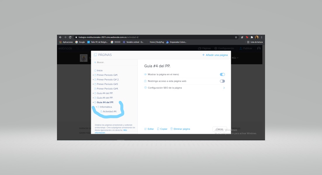 1. Ingresar al Webnode de cada uno y crear en actividades con el nombre de Actividad 4.