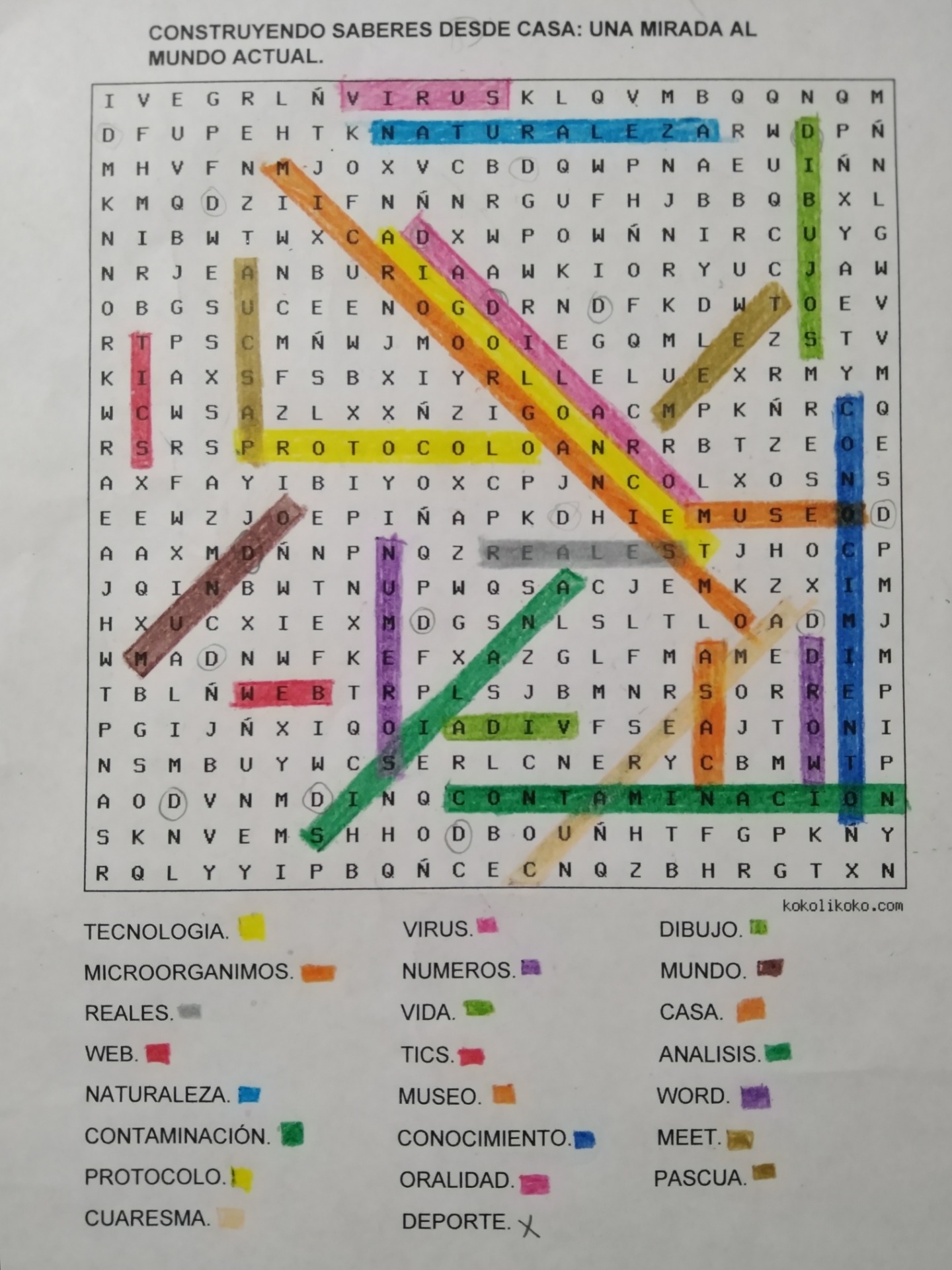 3. Elabora una lista de las palabras nuevas y realiza una sopa de letras en tu cuaderno, también puedes utilizar kokolikoko.com