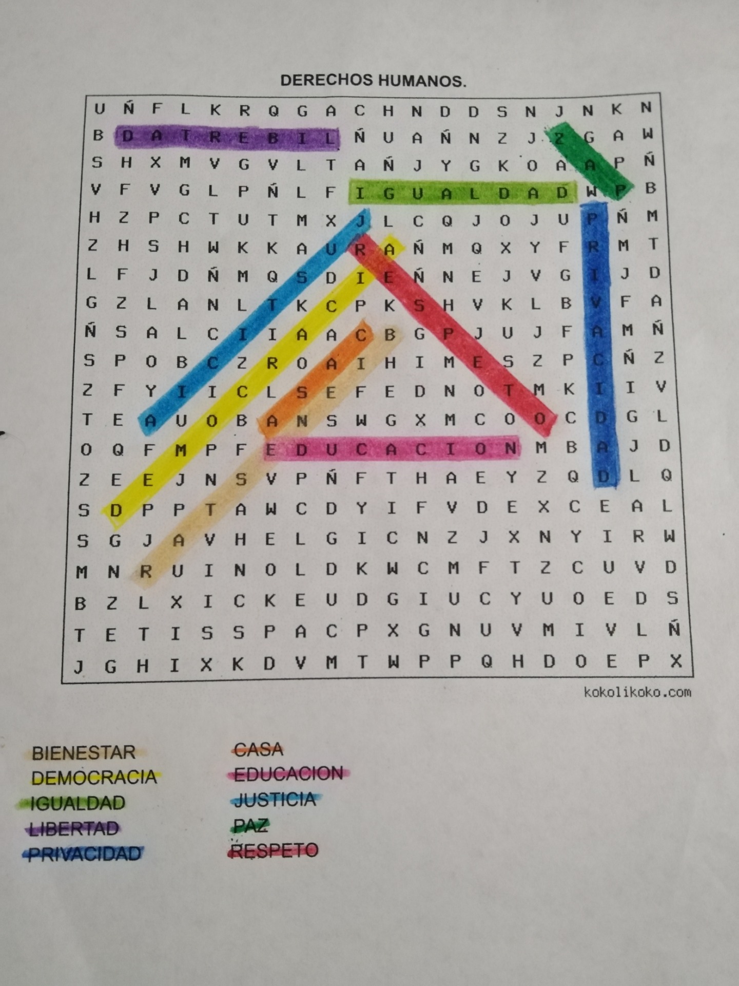2. Elabore una sopa de letras con 10 palabras referentes a los derechos humanos.